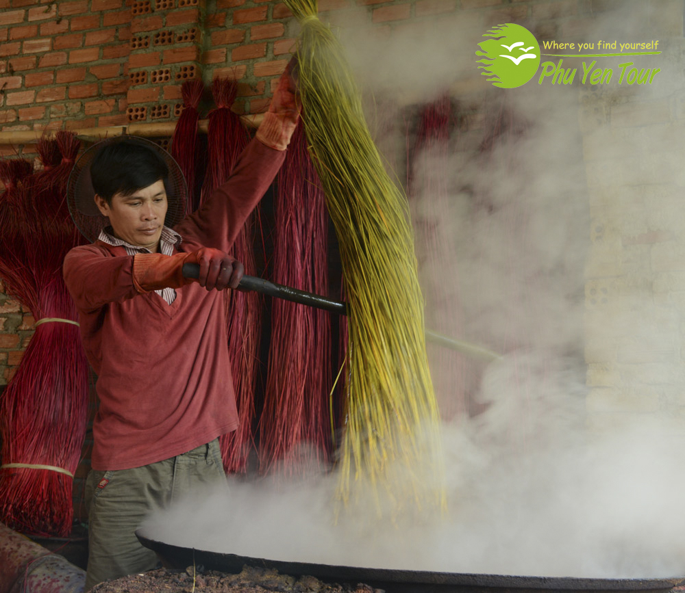 Cói được thu hoạch đem về phơi khô rồi nhuộm màu sau đó phơi lần nữa. Tiếp theo là công đoạn dệt chiếu với thủ công do 2 người dệt 1 tấm, khoảng 30 phút là xong 1 cái. Ngày nay nhiều gia đình trong làng nghề dệt chiếu Phú Tân đã mua các máy dệt chiếu hiện đại, tăng năng suất chiếu dệt ra, giảm sức người vất vả, tăng thu nhập kinh tế gia đình. Làng nghề Phú Tân là một trong những làng nghề truyền thống tiêu biểu ở Phú Yên thu hút nhiều khách tham quan, trải nghiệm.