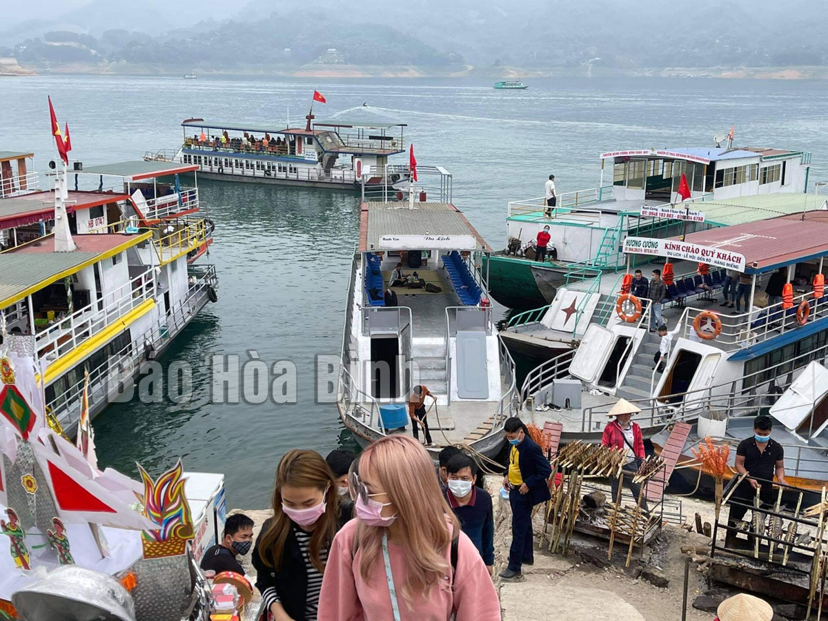 Nằm trong chuỗi du lịch lòng hồ sông Đà và danh thắng động Thác Bờ, đền bà Chúa Thác Bờ thuộc top các địa điểm du lịch nổi tiếng của tỉnh. Hàng năm, đền không chỉ đón khách hành hương đến xin lộc chúa bà mà còn đón nhiều khách du lịch tới thăm quan, ngắm cảnh và tận hưởng không khí trong lành. Lễ hội đền diễn ra từ ngày mồng 7 tháng Giêng, kéo dài đến hết tháng 3 âm lịch. Tuy nhiên, từ những ngày tháng Chạp của năm cũ, nơi đây đã có rất đông khách về lễ tạ. Để đến đền, người đi lễ hay du khách phải đi 2 chặng, sau tuyến đường bộ là đến chặng đường sông với 3 tuyến đường chính: từ cảng du lịch Thung Nai, xã Thung Nai (Cao Phong) là cảng gần đền nhất với thời gian di chuyển bằng thuyền máy khoảng 15 phút; từ cảng Bích Hạ, xã Hòa Bình (TP Hòa Bình) đến đền với thời gian khoảng 1 tiếng rưỡi; từ bến nước xã Bình Thanh (Cao Phong) đến đền chừng 45 phút.
